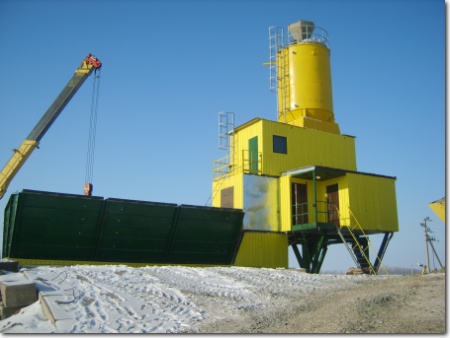 - Кабина оператора, система управления: Кабина в которой размещено рабочее место оператора, силовое электрооборудование и аппаратура системы управления. Оператор осуществляет контроль за работой установки по динамической мнемосхеме на мониторе персонального компьютера. Технологическим процессом приготовления смесей управляет микроконтроллеры Allen-Bredey (концерн "Rockwell" Германия), которые позволяют визуально контролировать выполняемые операции, вести учет расхода материалов, диагностировать состояние оборудования и вырабатывать рекомендации для устранения неисправностей;